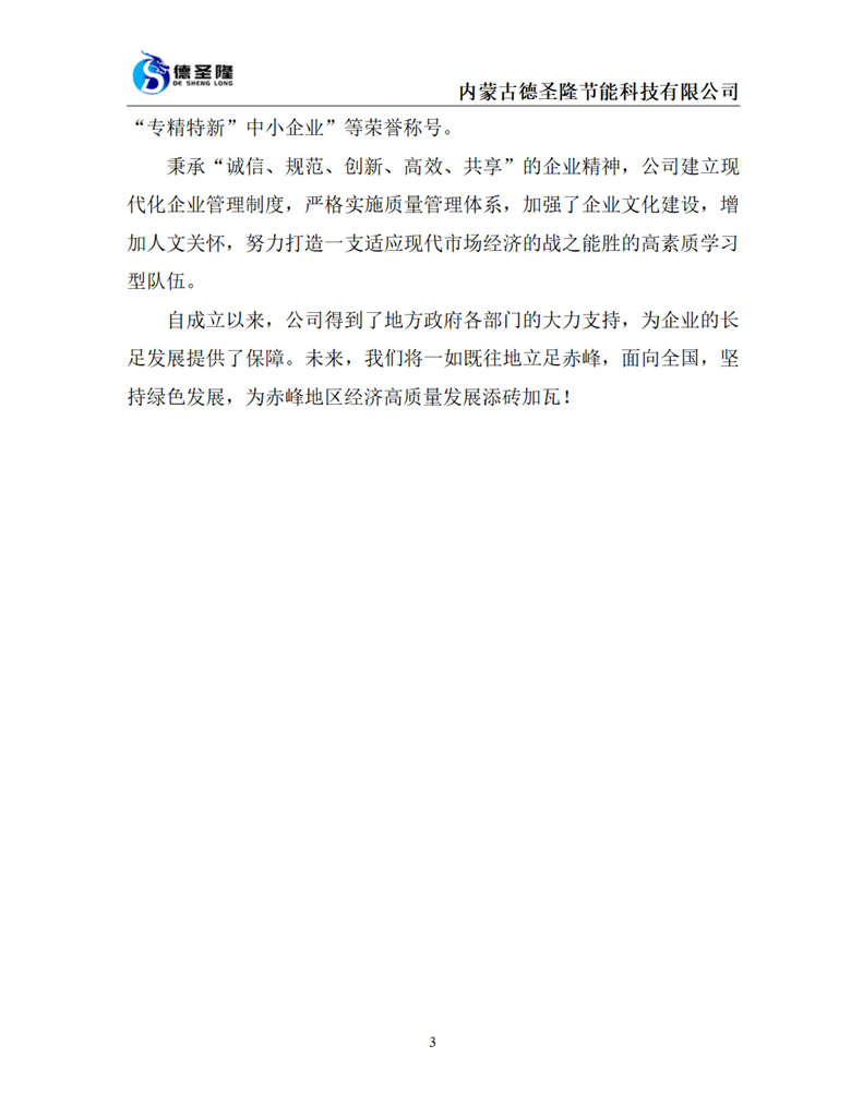 內(nèi)蒙古德圣隆節(jié)能科技有限公司始終踐行“誠信立業(yè)、科技興企、質(zhì)量為本、安全為天”的經(jīng)營理念,堅(jiān)持“以客戶為中心,以奮斗者為本”的宗旨,以“讓天更藍(lán)、水更綠,居住更安全,生活更溫暖”為使命,努力實(shí)現(xiàn)“打造百年品牌。